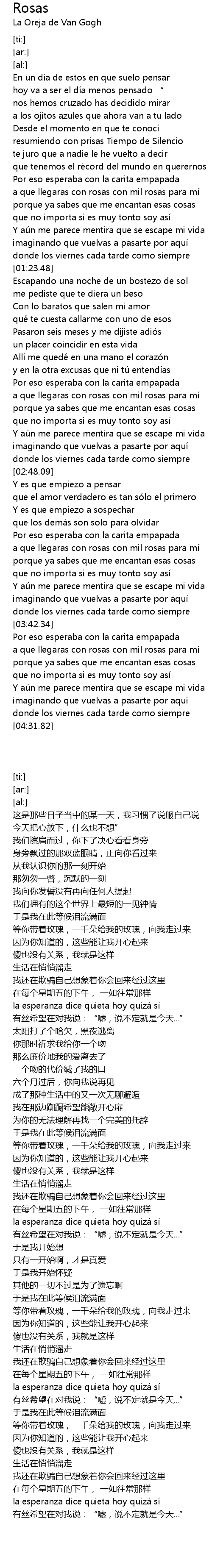 | [03:16.68] | a que llegaras con rosas con mil rosas para mi |