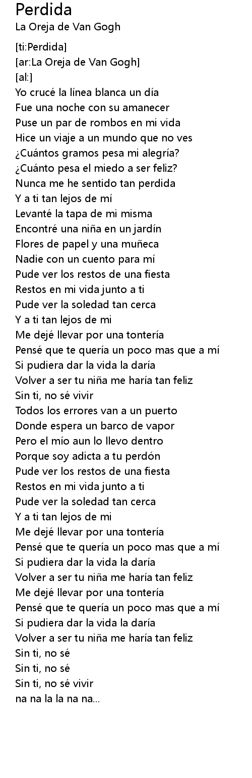 | [00:39.36] | Nunca me he sentido tan perdida |