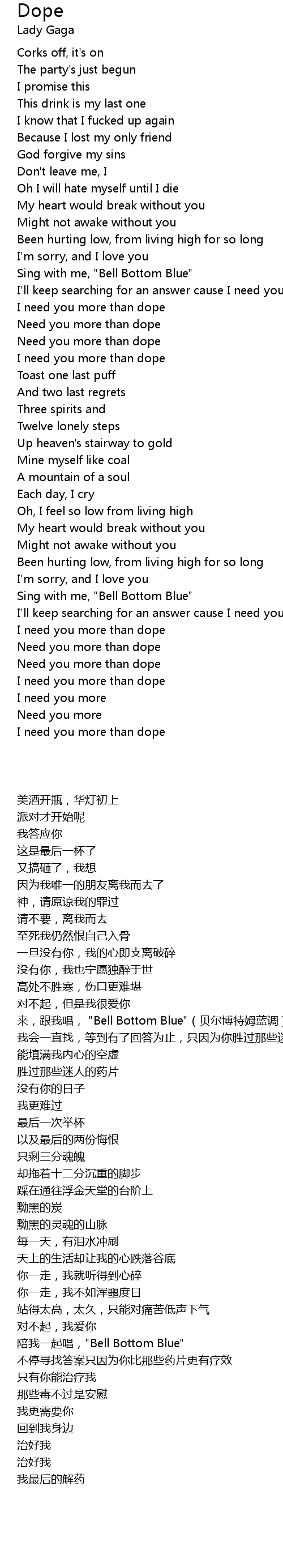 | [01:23.558] | I'll keep searching for an answer cause I need you more than dope |