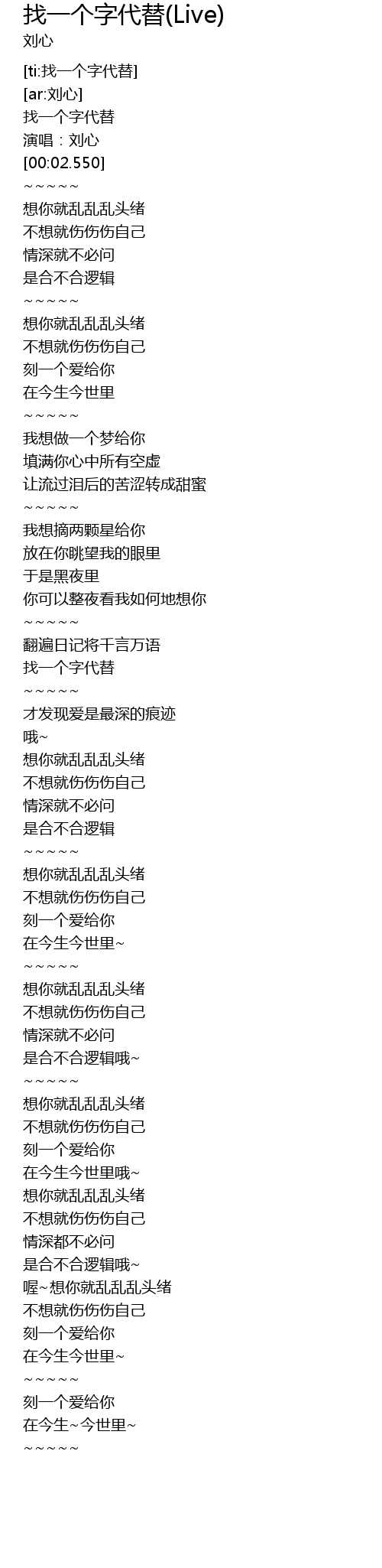 | [00:00.107] | zhǎo yí gè zì dài tì |