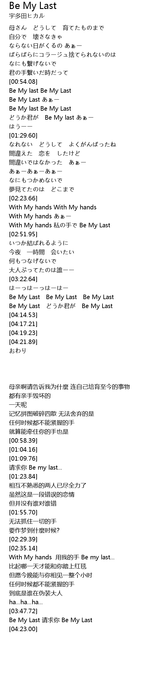 | [01:04.16] | Be My Last あぁー |