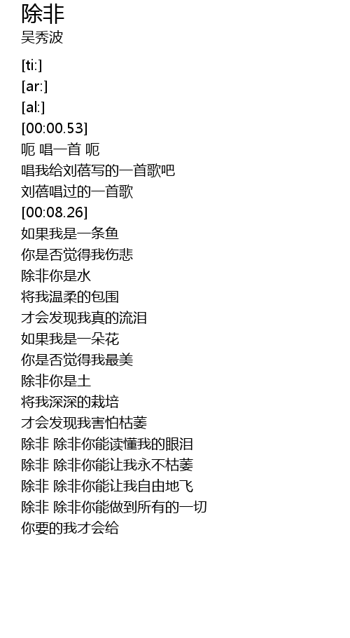 | [00:18.04] | chú fēi nǐ shì shuǐ |