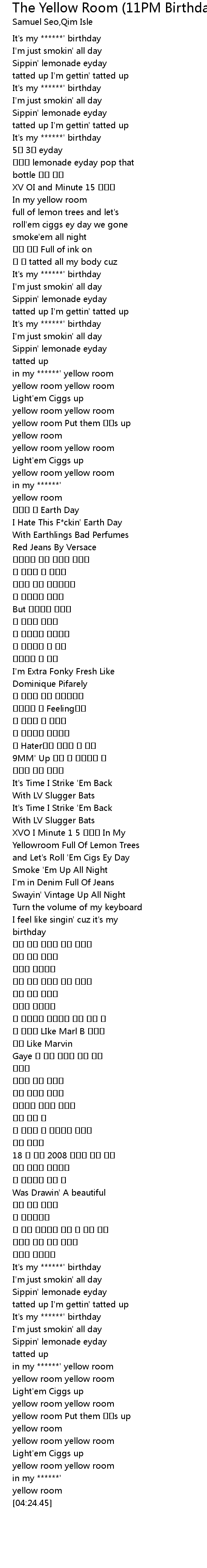 | [01:08.44] | in my ******' yellow room |