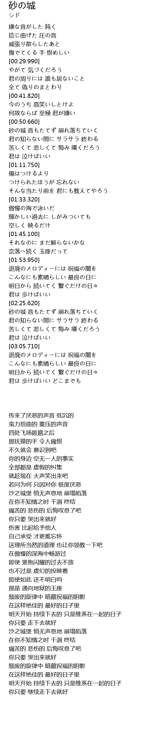砂の城 音もたてず 崩れ落ちていく |