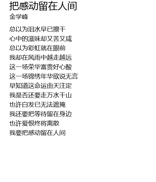 | [01:46.480] | wǒ yào bǎ gǎn dòng liú zài rén jiān |