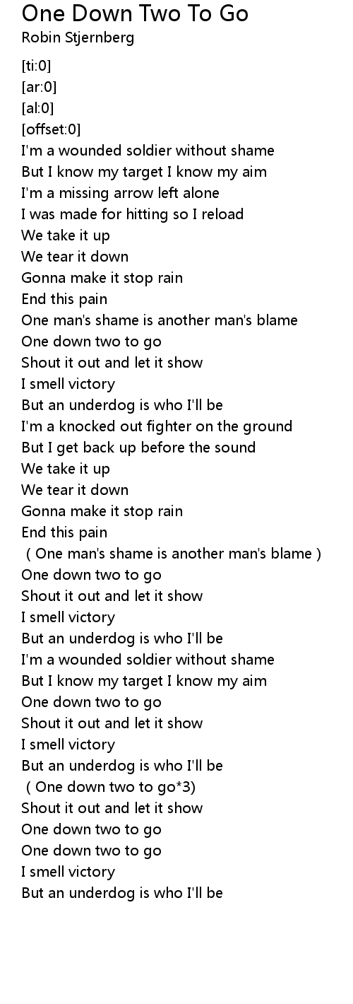 | Song | One Down Two To Go |
