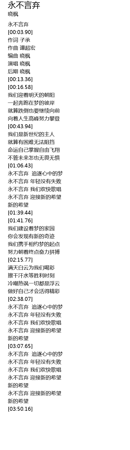 | [03:14.97] | 永不言弃 年轻没有失败 |