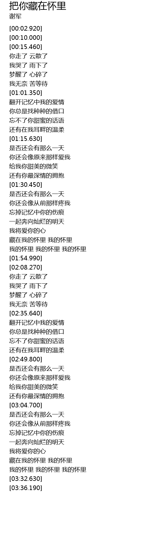| [03:21.450] | 藏在我的怀里 我的怀里 |