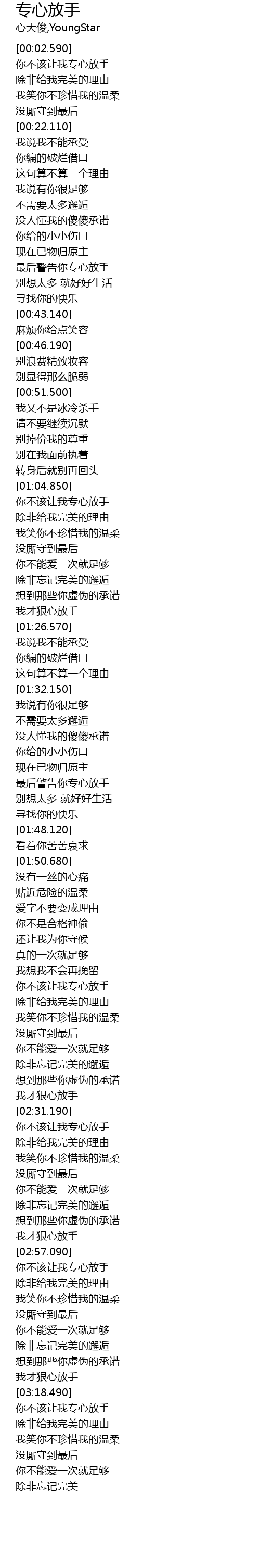 | [02:29.380] | wǒ cái hěn xīn fàng shǒu |