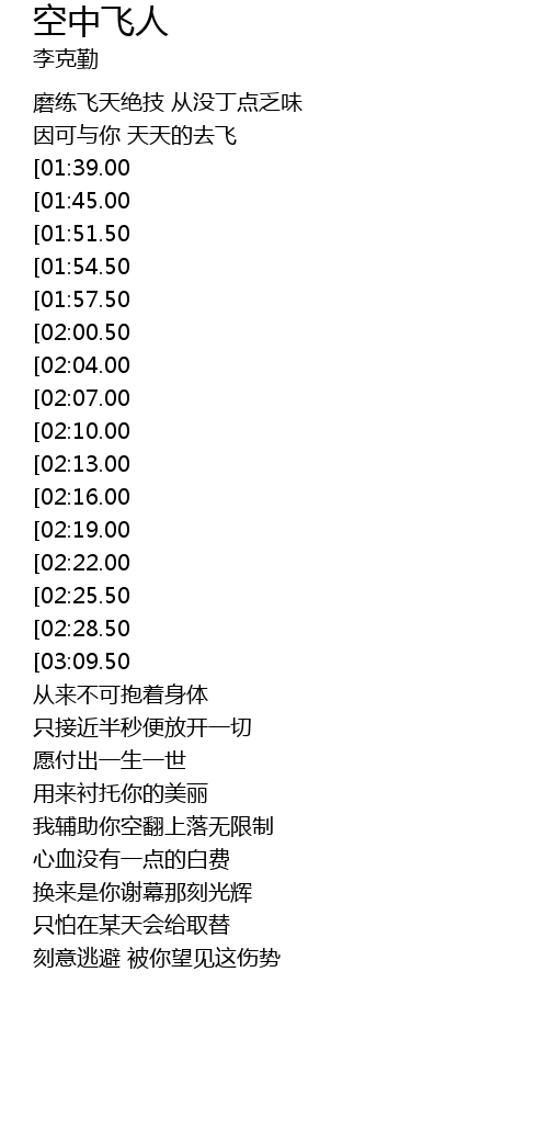 | [01:28.50][03:09.50] | *空中飞人* |