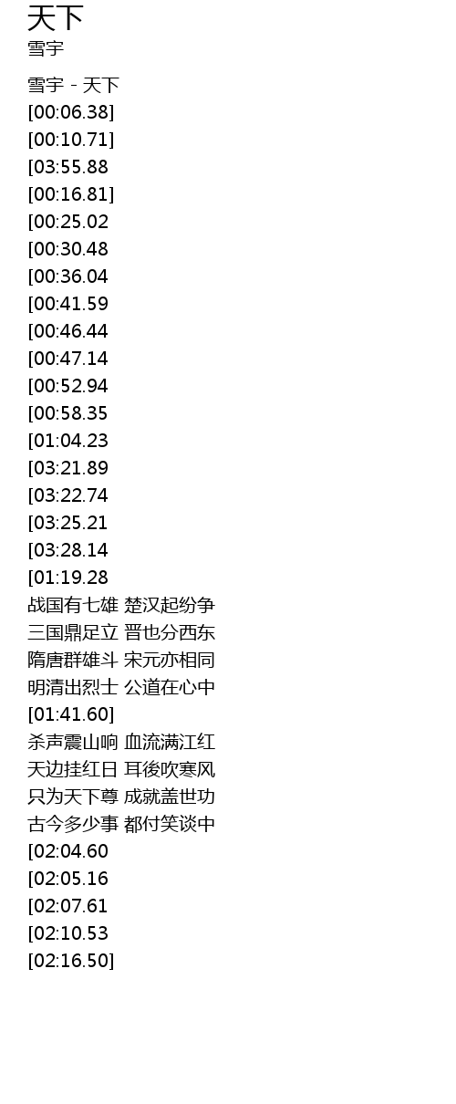 | [01:31.36] | 隋唐群雄斗 宋元亦相同 |