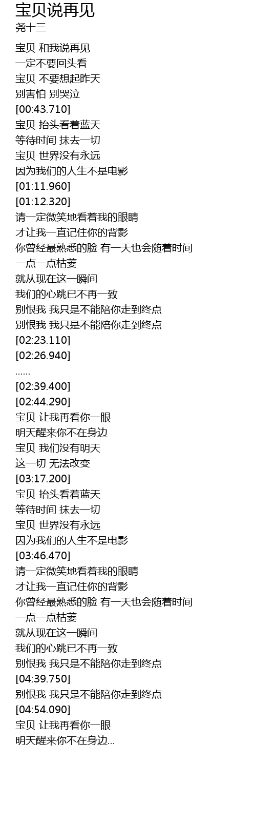 | [00:16.590] | 宝贝 和我说再见 |