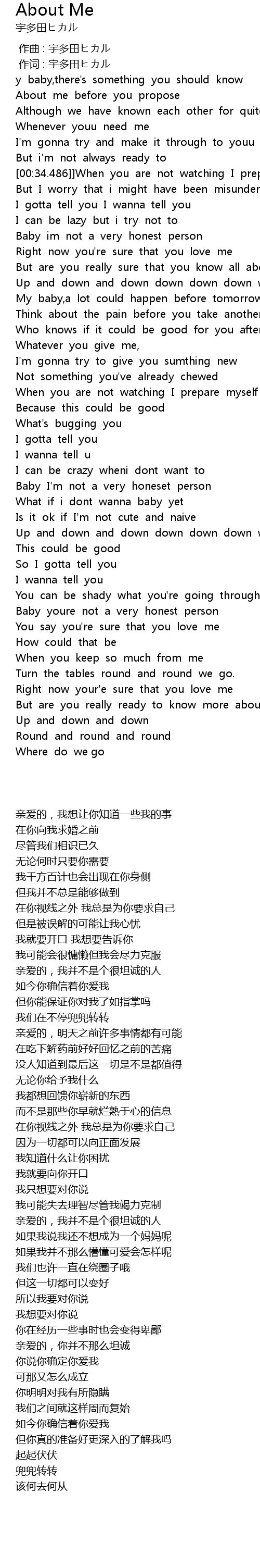 | [00:00.536] | 作词 : 宇多田ヒカル |