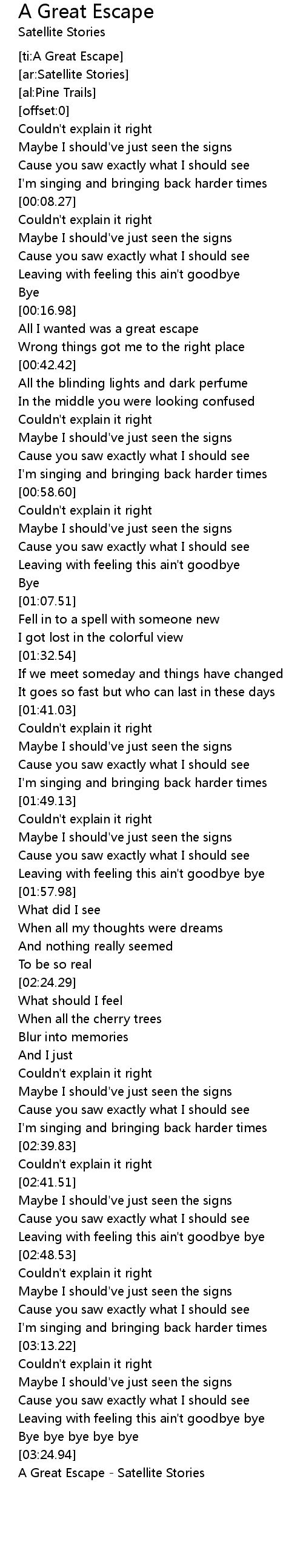 [ti:A Great Escape] |