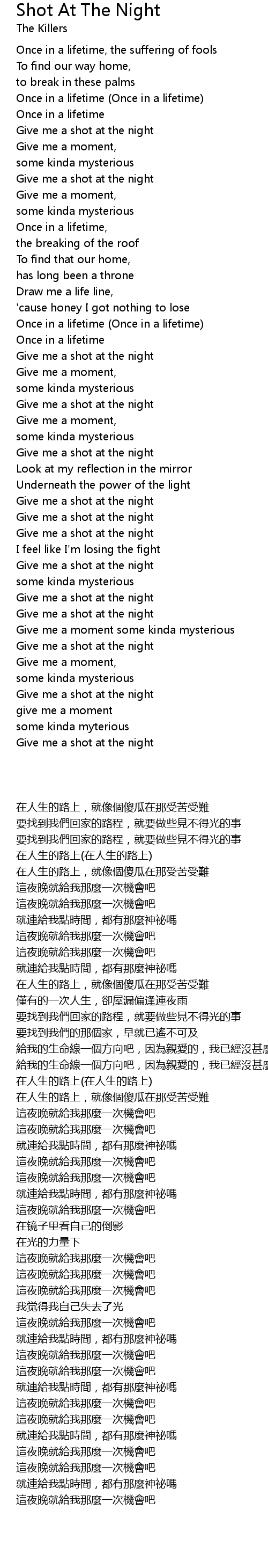 Give me a shot at the night |