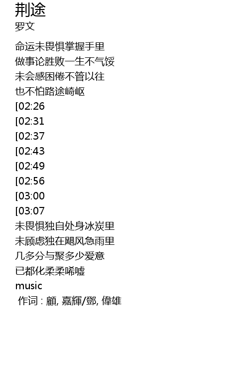 | [00:47][02:26] | 历尽怒与恨几番哭笑里 |
