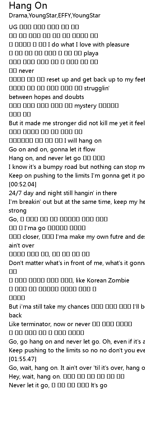 | [01:42.53] | Go, go hang on and never let go. Oh, even if it's a bumpy road |