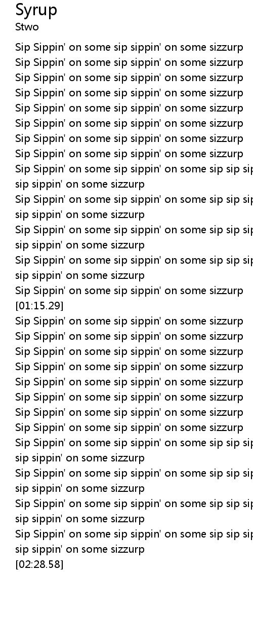| [02:15.99] | Sip Sippin' on some sip sippin' on some sip sip sip sippin' on some sip sippin' on some sizzurp |
