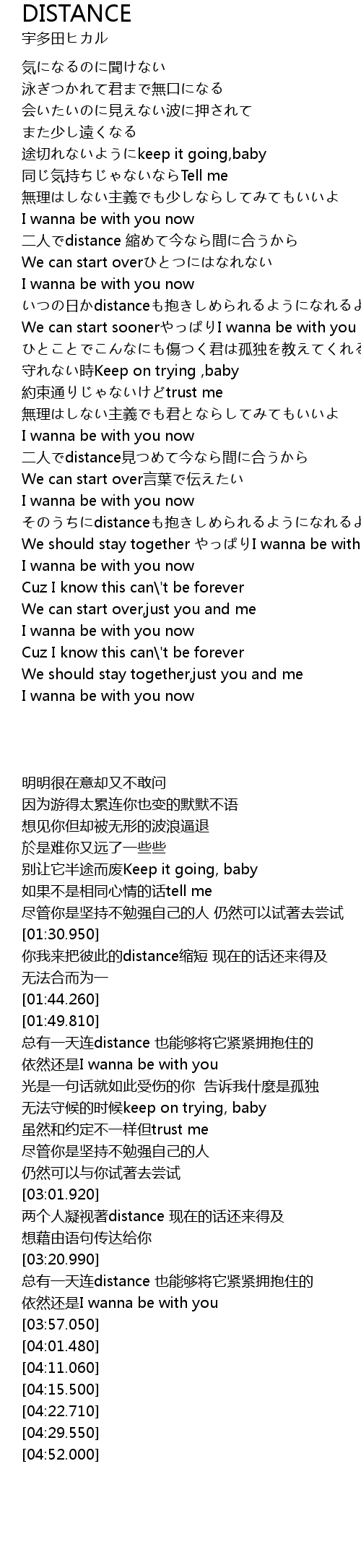 | [03:05.610] | 二人でdistance見つめて今なら間に合うから |