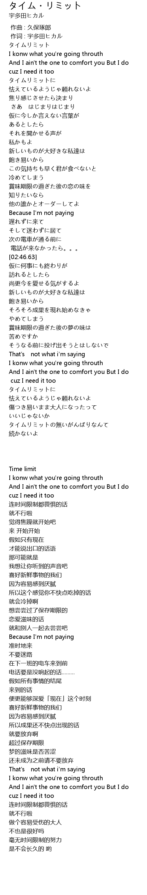 | [00:00.685] | 作词 : 宇多田ヒカル |