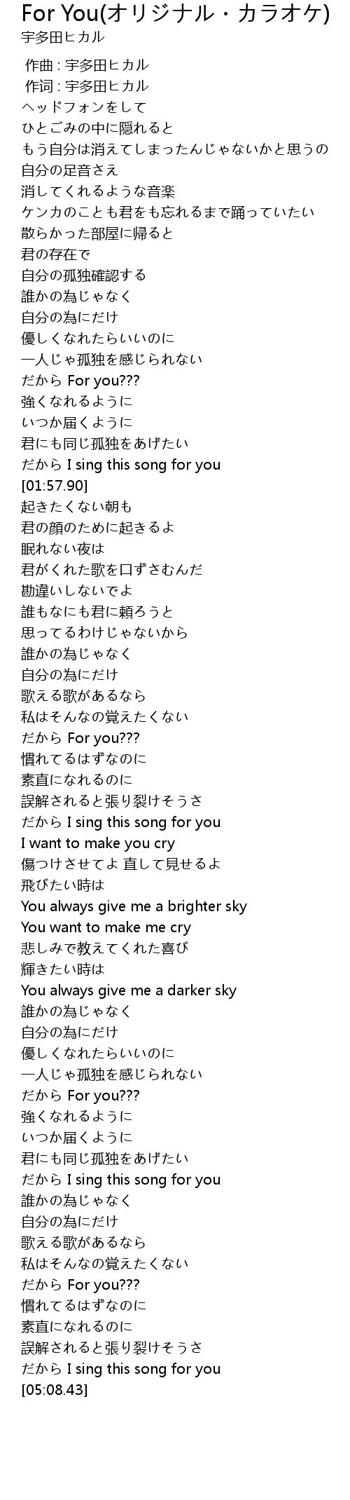 | [00:01.00] | 作词 : 宇多田ヒカル |