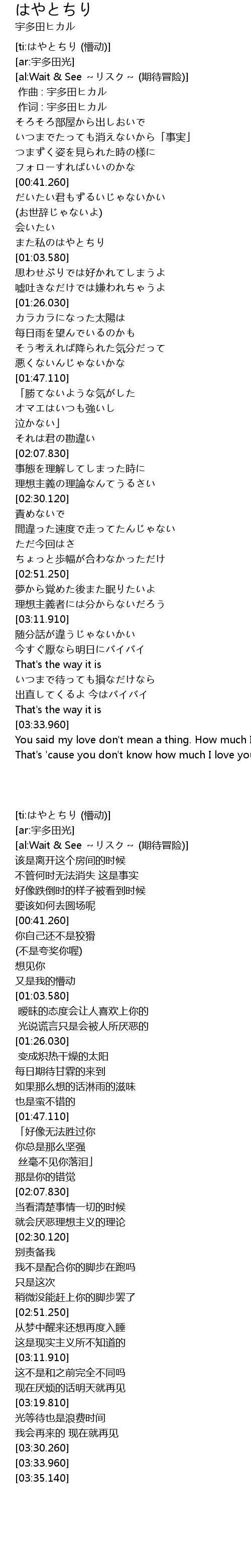 | [00:01.00] | 作词 : 宇多田ヒカル |