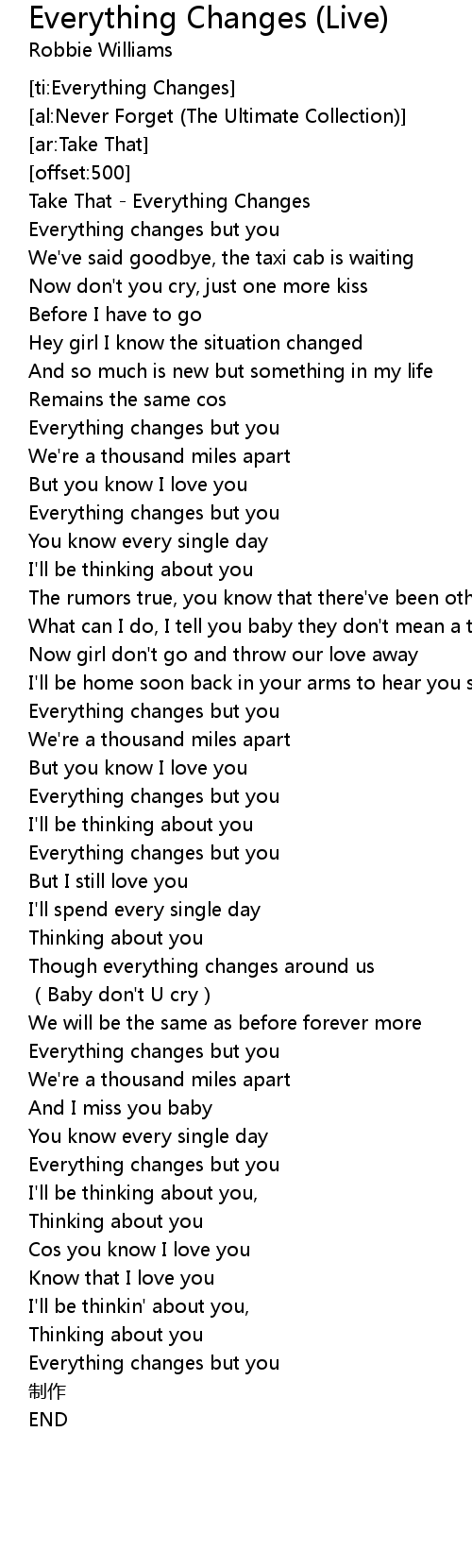 | [00:00.00] | Take That Everything Changes |