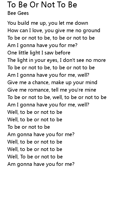 To be or not to be, to be or not to be |