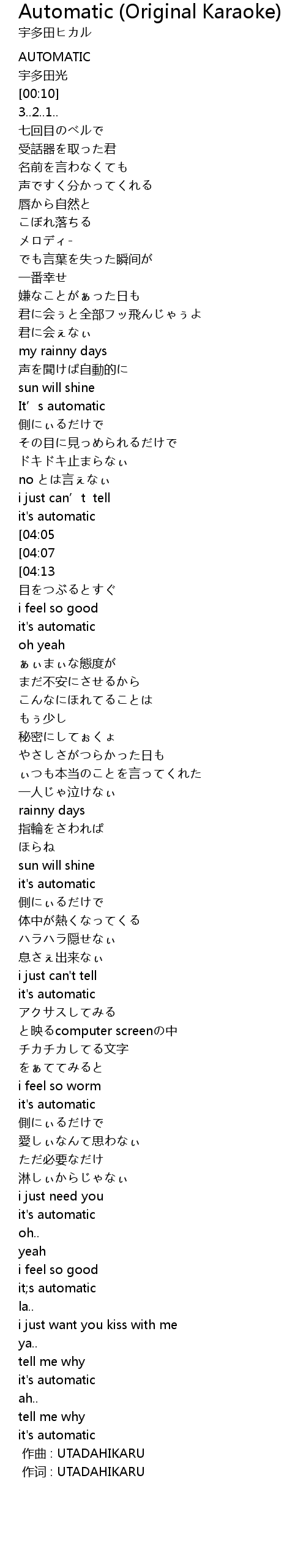 | [00:00.00] | 作曲 : UTADAHIKARU |