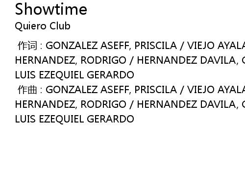 | [00:00.000] | 作词 : GONZALEZ ASEFF, PRISCILA / VIEJO AYALA, MARCELA / MARTINEZ HERNANDEZ, RODRIGO / HERNANDEZ DAVILA, GUSTAVO MAURICIO / DOMINGUEZ QUIJANO, LUIS EZEQUIEL GERARDO |