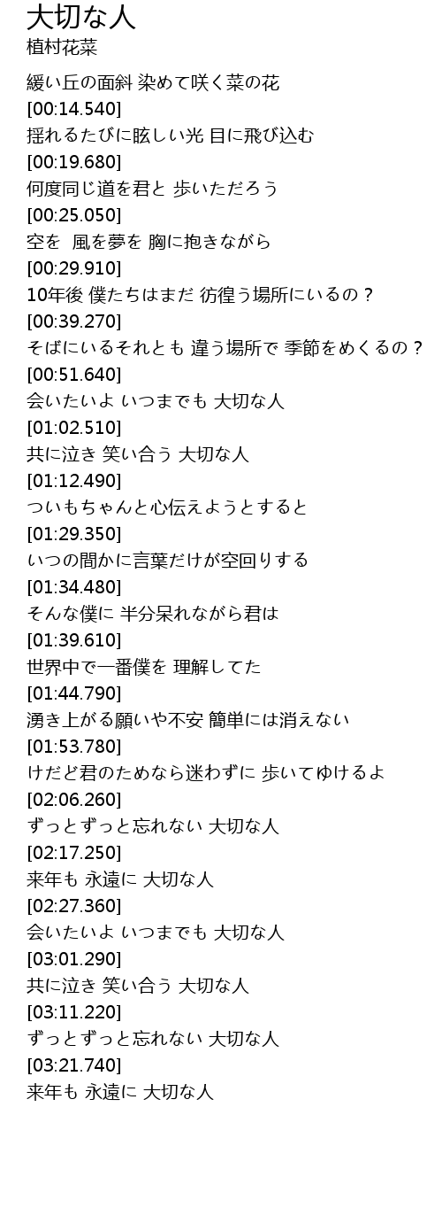 | [03:14.090] | ずっとずっと忘れない 大切な人 |