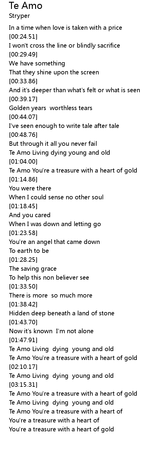 [01:59.08] Te Amo You're a treasure with a heart of gold
