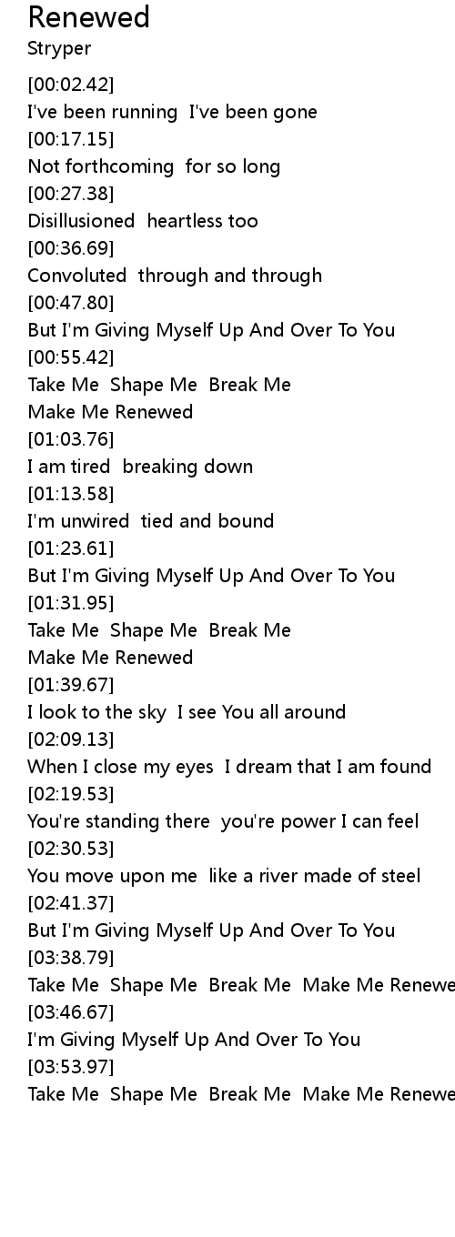 Take Me Shape Me Break Me Make Me Renewed |