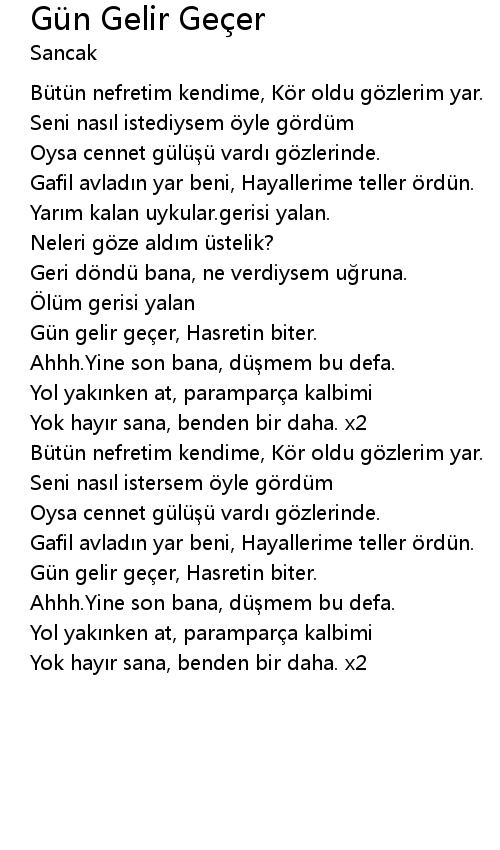 | Gü n gelir ge er, Hasretin biter. | |