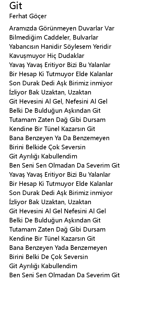 | [01:36.95] | Belki De Bulduğun Aşkından Git |