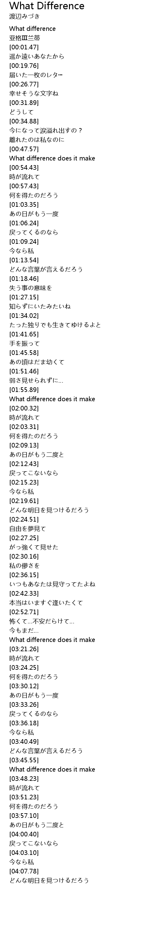 | [03:46.24] | What difference does it make |