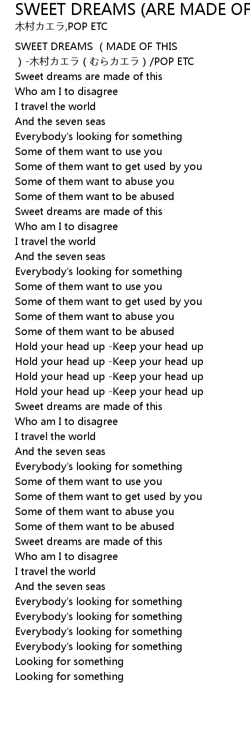 | [00:00.00] | SWEET DREAMS (MADE OF THIS )-木村カエラ(むらカエラ)/POP ETC |
