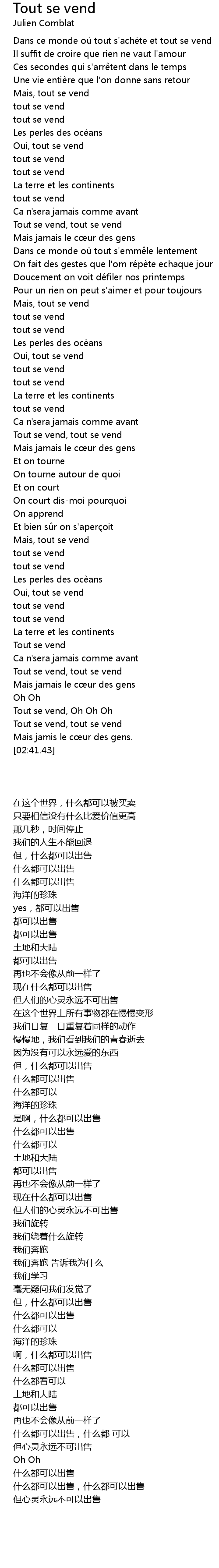 | [00:40.76] | tout se vend |