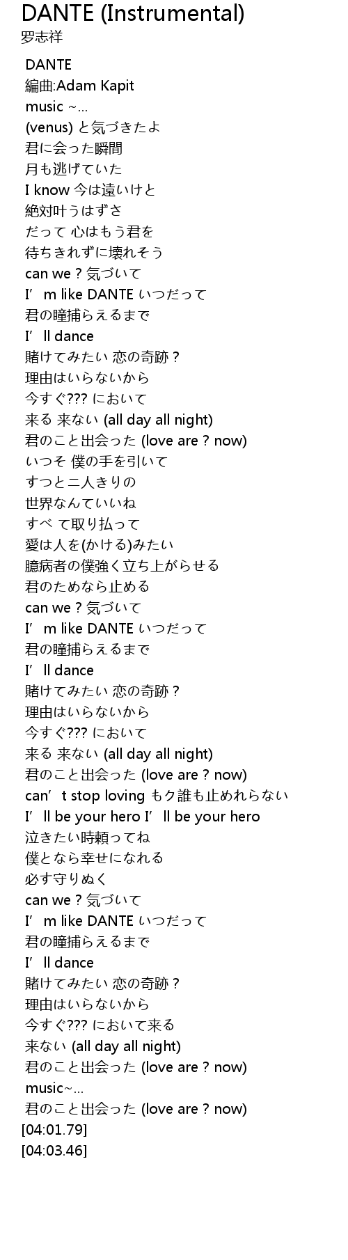 | [03:54.46] | 君のこと出会った (love are ? now) |
