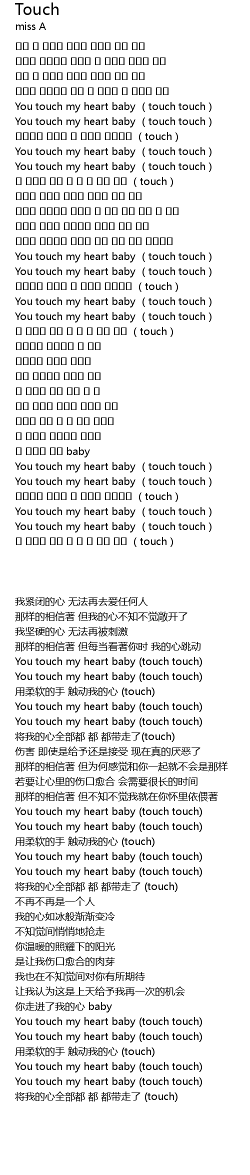 | [01:08.340] | You touch my heart baby (touch touch) |
