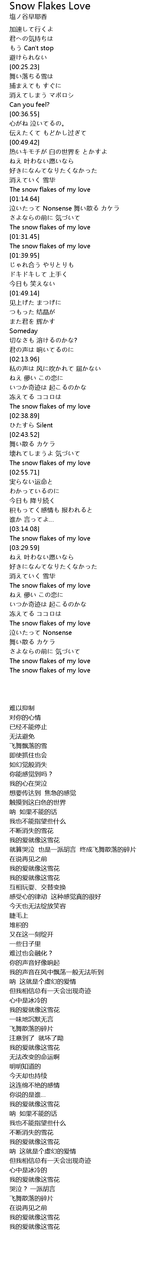 | [00:50.98] | 热いキモチが 白の世界を とかすよ |