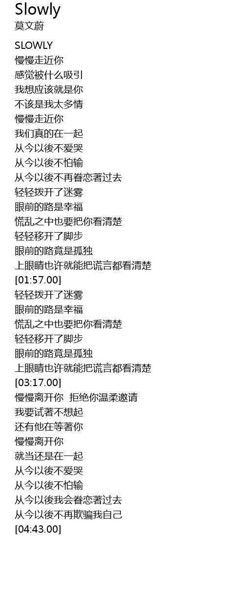 | [03:32.00] | 慢慢离开你 拒绝你温柔邀请 |