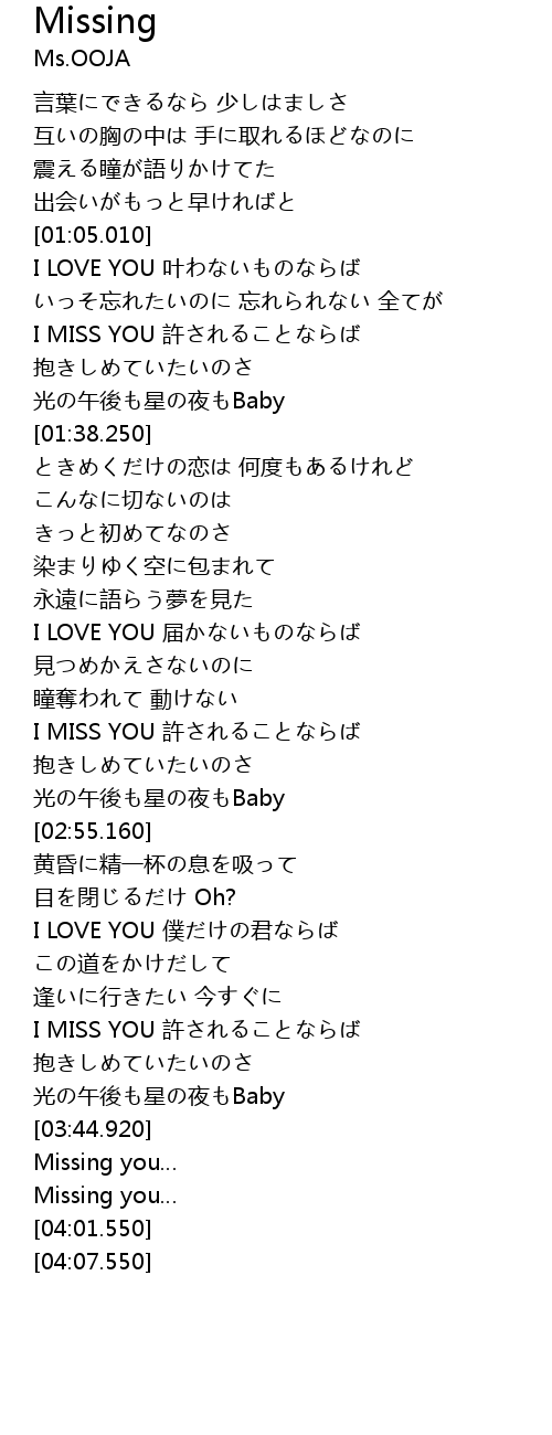 | [03:13.000] | I LOVE YOU 僕だけの君ならば |