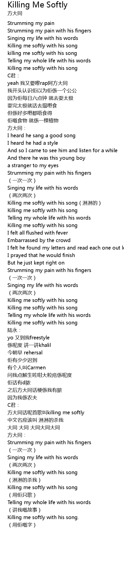 | [01:52.15] | Killing me softly with his song |