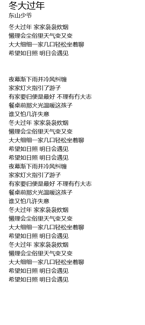 | dōng dà guò nián jiā jiā niǎo niǎo chuī yān | |