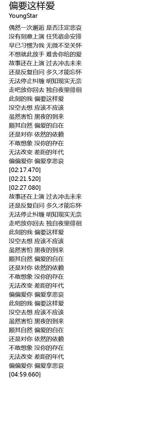 | [03:59.560] | 此刻的我 偏要这样爱 |