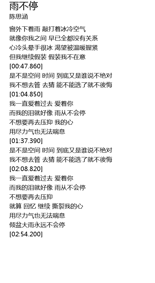 | [02:45.240] | 倾盆大雨永远不会停 |