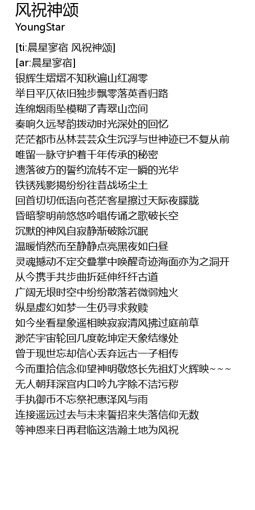 | [04:12.182] | 等神恩来日再君临这浩瀚土地为风祝 |