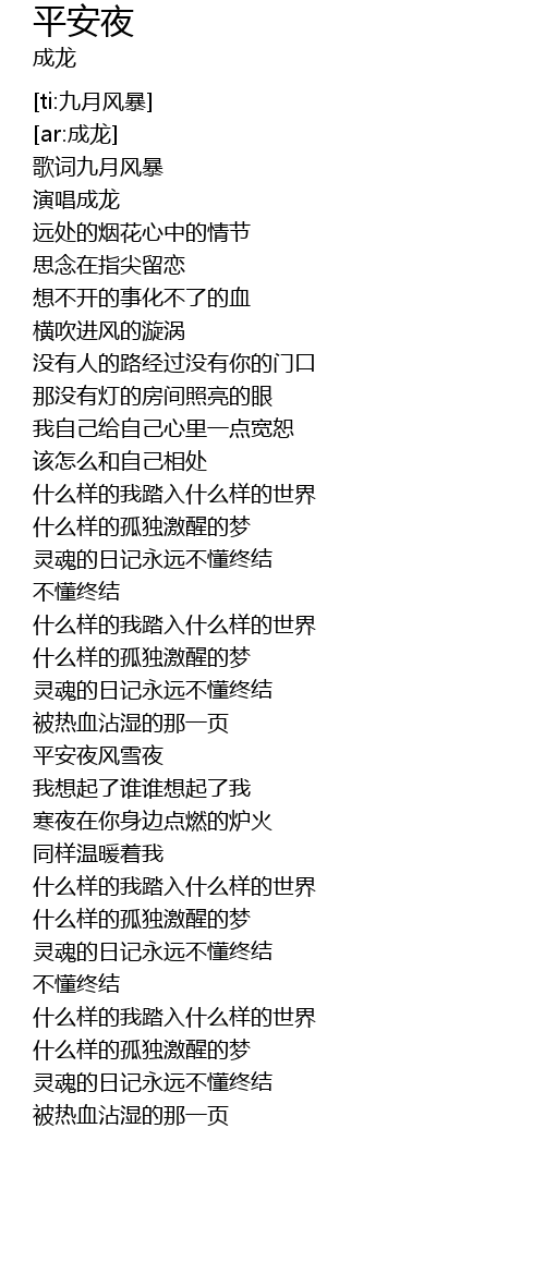 | [01:42.529] | píng ān yè fēng xuě yè |