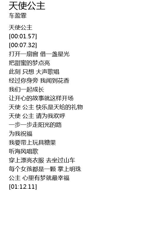 | [00:30.88] | tiān shǐ gōng zhǔ kuài lè shì tiān gěi de lǐ wù |
